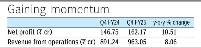 During the fourth quarter of the last fiscal, revenue from operations increased to ₹963.05 crore from ₹891.24 crore in the corresponding period of the previous fiscal, according to a stock exchange filing.