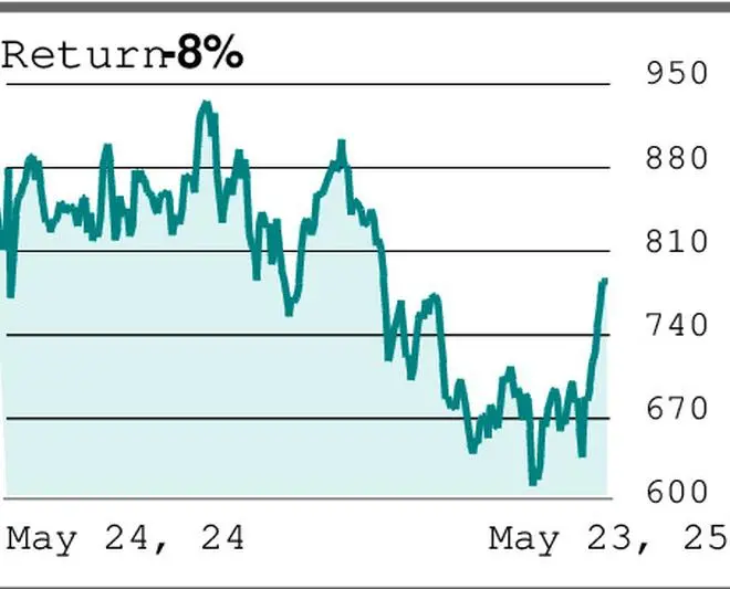 DLF’s stock, after consolidating in the ₹620-700 range for nearly two months, saw a breakout of the upper end of the range last week. It has been rallying over the past two weeks, showing a strong positive momentum. These factors indicate an upward reversal in trend. There might be some moderation in price, possibly to ₹700, before the next uptrend. But once the rally resumes, the stock can rise to ₹1,100.