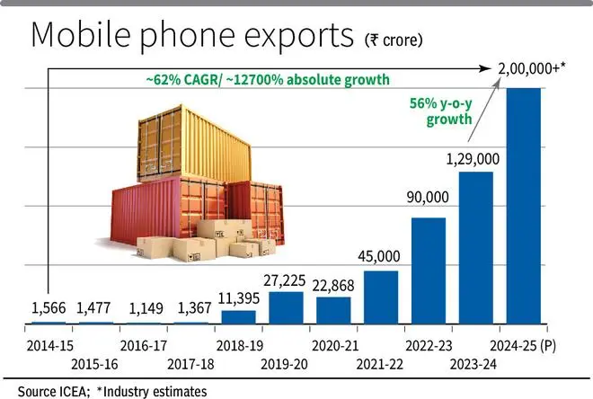 The ICEA on Friday announced that mobile phone exports from India have crossed ₹2 lakh crore in FY 2024-25. Smartphones have become India’s single largest export commodity. The export momentum is led by global companies such as Apple and Samsung, which have scaled their manufacturing operations significantly in India. As a result, India’s mobile phone production is estimated to have reached ₹5,25,000 crore in FY25, up significantly from ₹4,22,000 crore in the previous fiscal year.