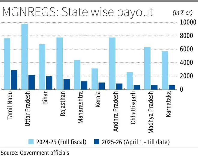 Tamil Nadu has emerged as the top recipient of funds from the Central government for the guaranteed rural employment scheme during the current fiscal year FY26 so far, followed by Uttar Pradesh and poll-bound Bihar, officials stated.